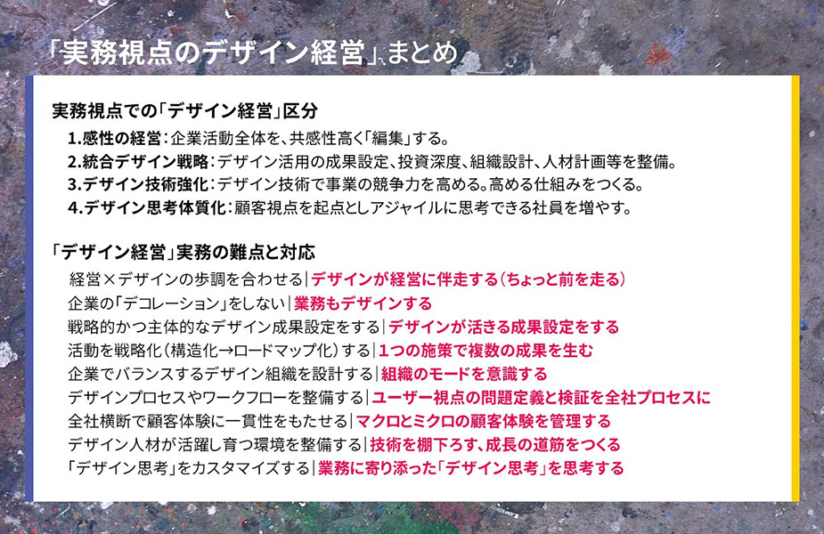 デザイン経営を推進するにあたって、どんな課題や解決方法があるのか、よく理解できました。 全体像を把握できました。