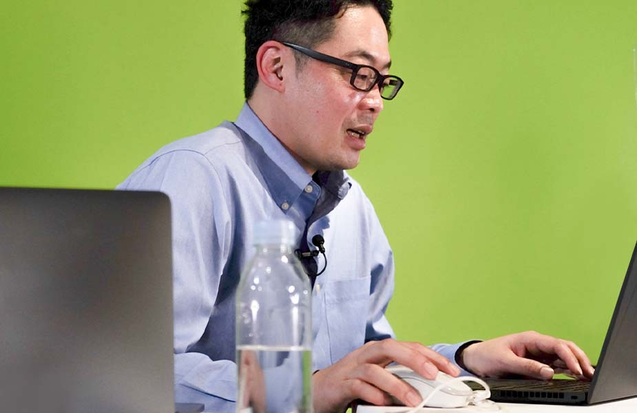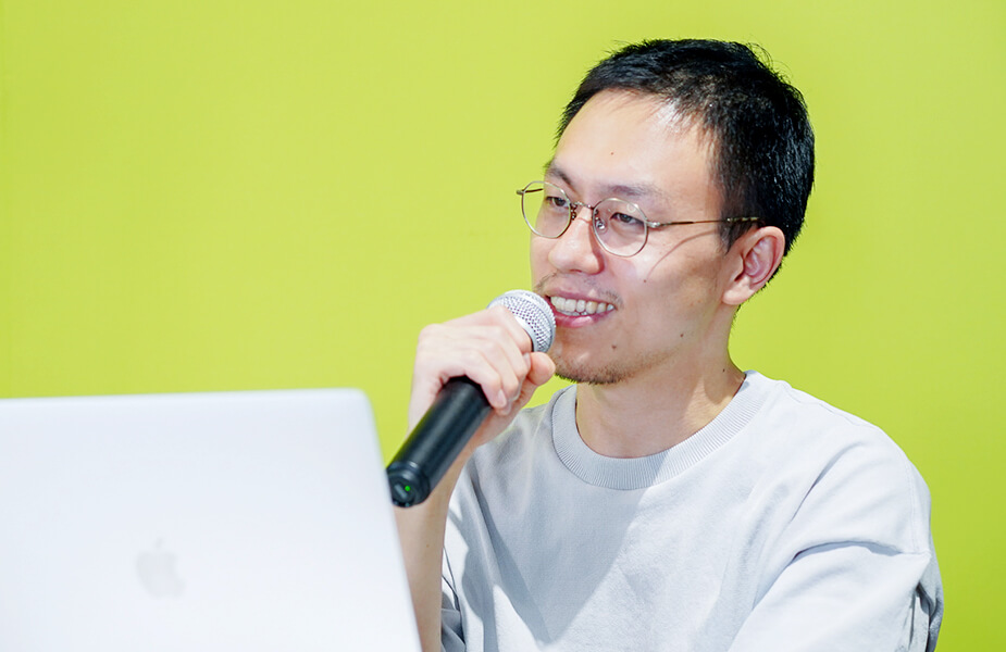 ウェブデザインの基礎知識、提案までの過程、技術の変化やトレンドなど。ユーザーにとって「使える」企業の伝えたいことが「伝わる」ウェブサイトを作るために、見野が長年の経験で得てきた知見をじっくりお話ししたプログラム。個人で完結することが出来ないからこそルールを作り、意思を伝え、チームで協働することの大切さにも触れました。デザイナーはもちろん他の職域の方にも、多くの気づきが得られる時間となりました。