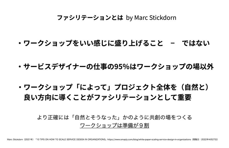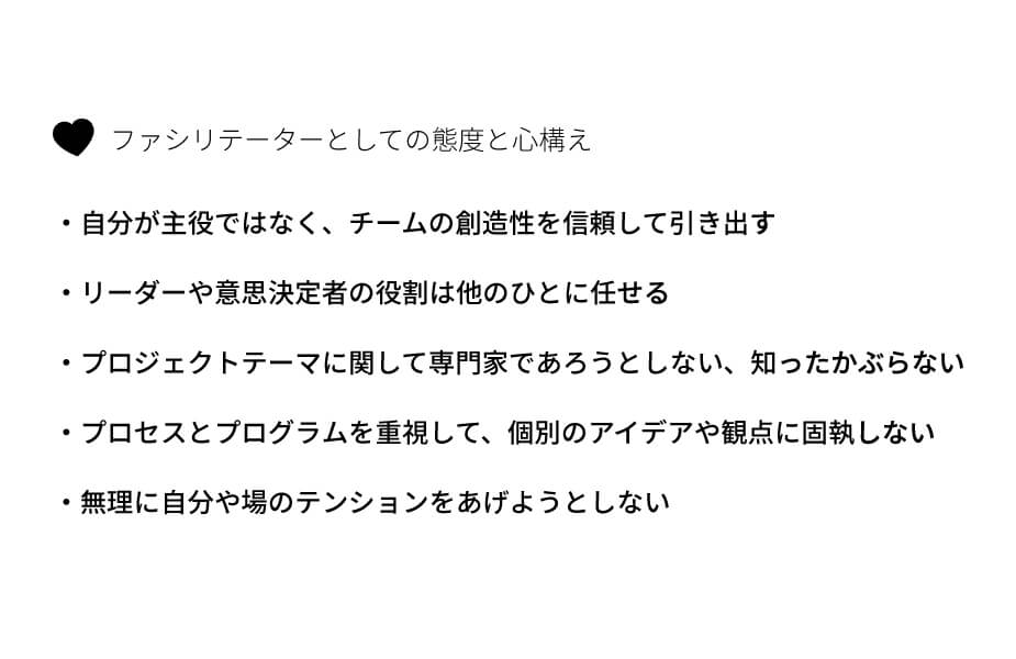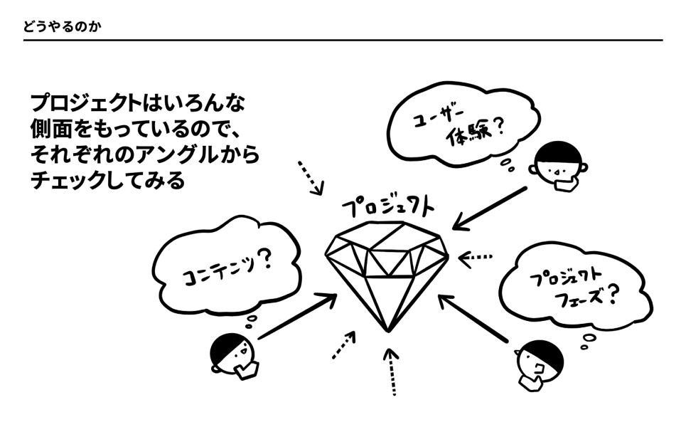 ワークショップではないですが「この会議って何が目的なんですか?」と参加者から疑問がでるような会議が社内で散見されるのですが、そのような質問が出た場合「What/Why/Howの3点セットの何かが欠けている」というお話が刺さりました。明日から改善できそうです。