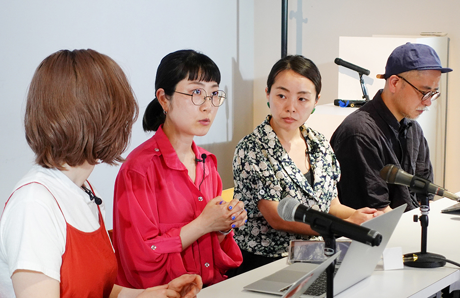 さまざまなフィールドでアートディレクション経験をもつ3名が登壇。トップバッターの森からは、クライアントやプロジェクトチーム全体で合意形成をとりながらクリエイティブを導く方法。ビジュアル表現を得意とする鹿児島は、一貫したコンセプトに基づいた世界観づくりのプロセス。エディトリアルデザインを長く経験した青木は、情報構造を意識した誌面デザインと後輩デザイナーへのフィードバック方法など、それぞれが実例を元に語りました。質疑応答では、アートディレクターのセカンドキャリアについて話題が発展する場面も。参加者から「ビジュアルだけでないコアな部分へのかかわりをすることで、ADの働き方の幅を広げていけるのだなと思いました(一部省略)」といった声も寄せられ、アートディレクションの可能性が感じられるプログラムとなりました。